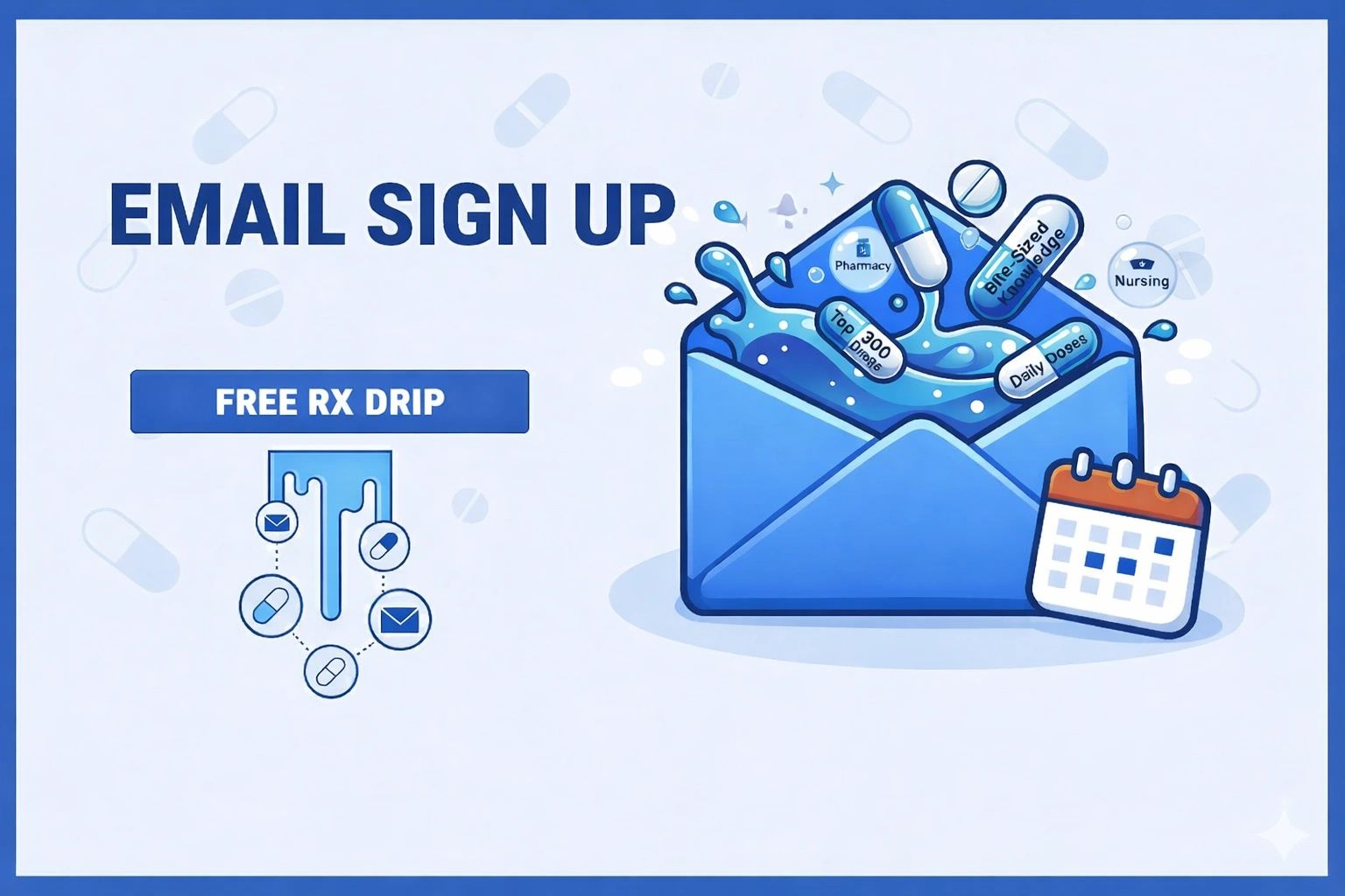 Get Bite Sized Pharmacology and essential information on the top 300 drugs directly emailed to you every few days. This includes key details for drug learning such as dosing, indications, common side effects, and more, helping you to effectively learn pharmacology with our comprehensive pharmacology study guide!